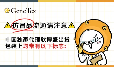 GeneTex所有产品仅由独家代理欣博盛进口,并由欣博盛及其授权代理商于中国贩卖,没有其他管道!!为了保障客户权益,请至欣博盛或其授权之代理商处购买。