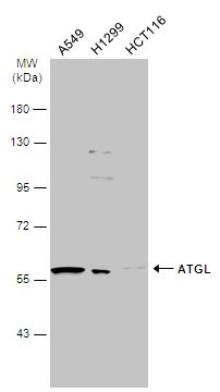 Anti-ATGL antibody [N1C1] used in Western Blot (WB). GTX109941