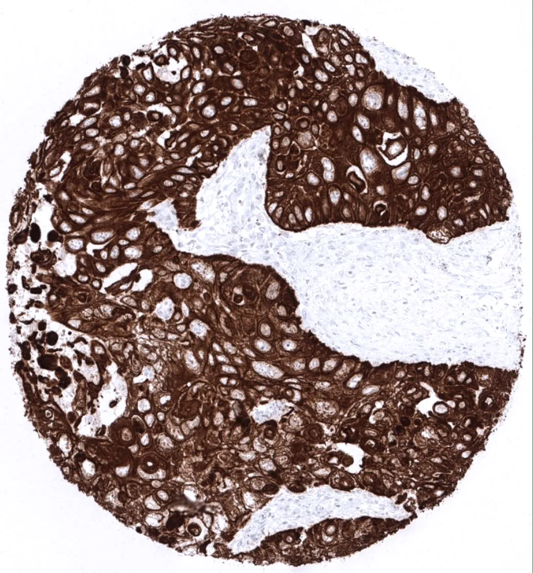 IHC-P analysis of human squamous cell carcinoma (SCC) from lung tissue using GTX04402 Cytokeratin 5 antibody [MSVA-605M] HistoMAX™.