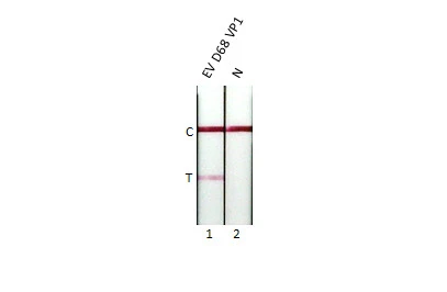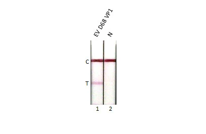 Viral envelope protein 1 (VP1) of Enterovirus D68 (EV-D68) is one of four structural proteins required to assemble the icosahedral viral capsid. VP1 is responsible for host cell attachment and viral entry into host cells. In addition, since it is located on the surface of the virion and presents serotype-specific neutralization epitopes, the gene coding for VP1 is important for serotype identification. This E. coli-expressed recombinant EV-D68 VP1 protein is purified using its N-terminal His tag.