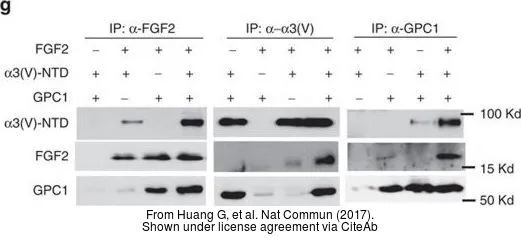 Untreated (–) and treated (+) A431 whole cell extracts (30 μg) were separated by 7.5% SDS-PAGE, and the membrane was blotted with Glypican 1 antibody [N3C3] (GTX104557) diluted at 1:3000. The HRP-conjugated anti-rabbit IgG antibody (GTX213110-01) was used to detect the primary antibody.