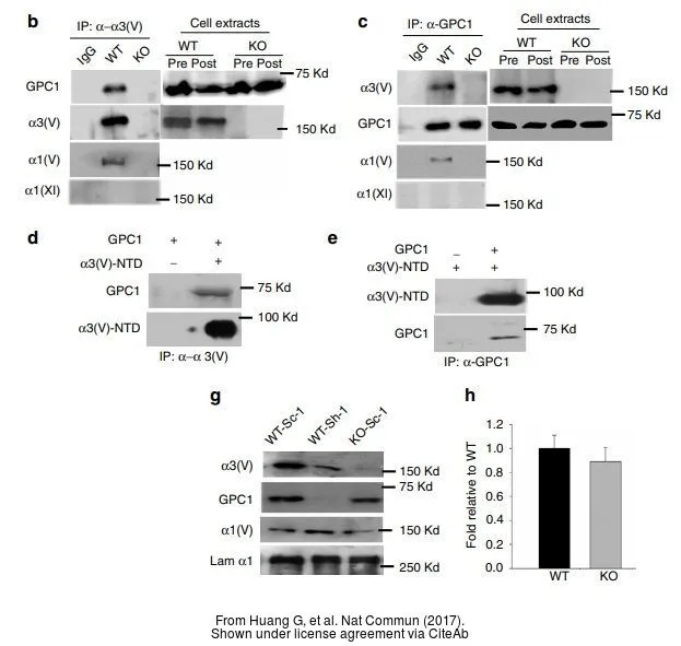 Various whole cell extracts (30 μg) were separated by 7.5% SDS-PAGE, and the membranes were blotted with Glypican 1 antibody [N3C3] (GTX104557) diluted at 1:500 and competitor's antibody (sc-365000) diluted at 1:500. The HRP-conjugated anti-rabbit IgG antibody (GTX213110-01) was used to detect the primary antibody.
