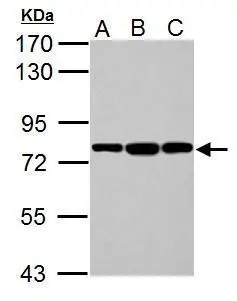 Grp78 antibody detects Grp78 protein by western blot analysis.