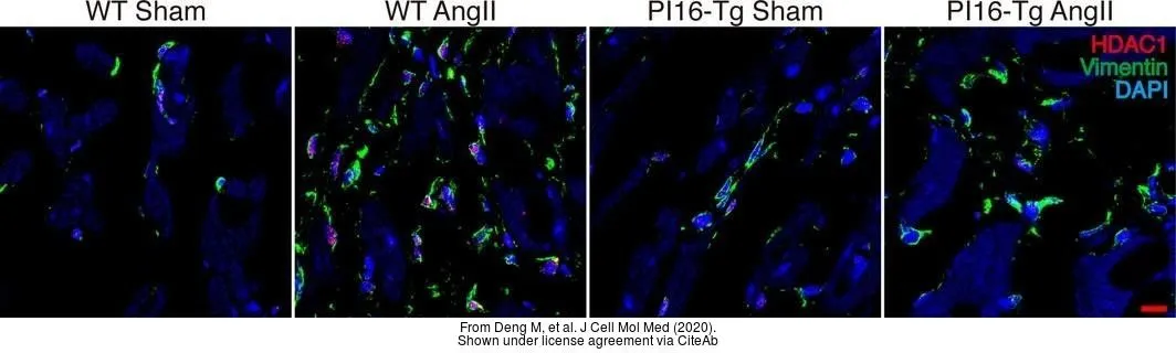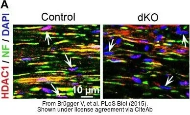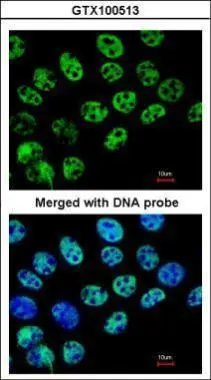 Green: HDAC1 antibody (GTX100513) diluted at 1:200. The signal was developed using goat anti-rabbit IgG antibody (Dylight488) (GTX213110-04).
