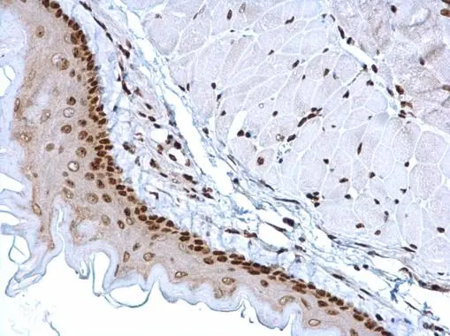 HMGB1 antibody detects HMGB1 protein at nucleus in mouse esophagus by immunohistochemical analysis.
