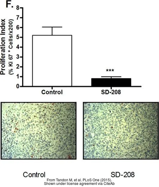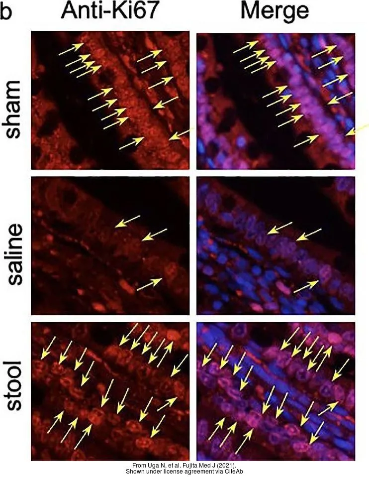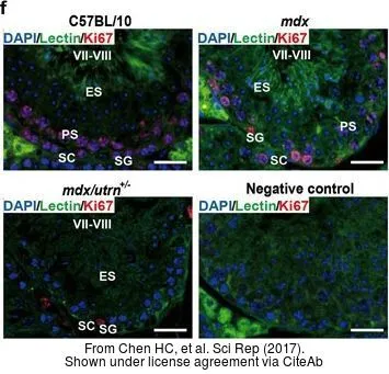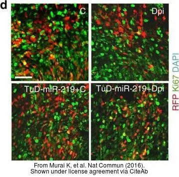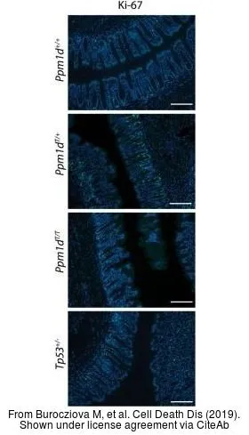 Ki67 antibody recognizes Ki67 antigen, a nuclear nonhistone protein with a predicted molecular weight of 359 kDa. Ki67 is present during the active phases of the cell cycle and is used clinically as a proliferation marker. Ki67 antibody is used extensively in immunohistochemistry to assess the grade or apparent aggressiveness of various malignancies.