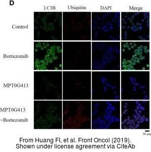 LC3B antibody detects LC3B protein at autophagosome by immunofluorescent analysis.
