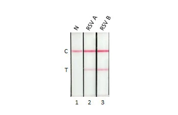 Detection of Respiratory Syncytial virus Nucleoprotein by lateral flow assay using the monoclonal antibody pair. Capture: Respiratory Syncytial virus Nucleoprotein antibody [HL1247] (GTX636649) Detection: Respiratory Syncytial virus Nucleoprotein antibody [HL2182] (GTX638186) Samples (40 ng) : 1. Running buffer (N)2. Respiratory Syncytial virus type A Nucleoprotein (GTX136751-pro) 3. Respiratory Syncytial virus type B Nucleoprotein (GTX136931-pro)