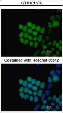 Green: SOX2 protein stained by SOX2 antibody [N1C3] (GTX101507) diluted at 1:250.