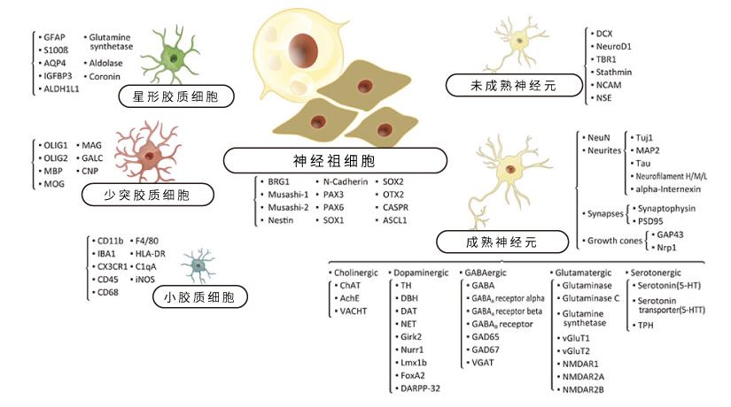 | 神经干细胞(NSC)是存在于发育中和成年哺乳动物CNS多能种群,具有自我更新的能力。 NSC从体内外胚层衍生的神经脊发育而来,或者可以通过实验从体外不同来源衍生或诱导而来。NSC可以在大脑中产生神经元和神经胶质细胞。这些神经元和神经胶质细胞表达独特的粘附分子、细胞骨架蛋白,转录因子和表面受体。 GeneTex为神经科学研究提供出色的抗体试剂,这些针对独特细胞类型标记的抗体可检测神经元、神经胶质和小胶质细胞。请参阅下面热门研究抗体。 |