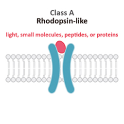 | Class A |  Rhodopsin-like (R)    Class A (Rhodopsin-like) GPCRs account for more than 85% of human GPCRs. This class is distinguished structurally by an additional palmitoylated 8th alpha helix. |  |  |  |