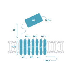 | Class F | Frizzled (F)   Class F (Frizzled) GPCRs feature a cysteine-rich domain (CRD) and a linker domain (LD) in the ECD. Members of this class play roles in development and regeneration through activation of the downstream Wnt or Hh signaling transduction pathways. |